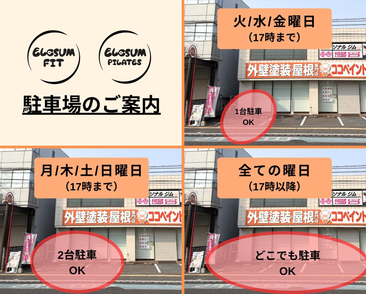 アクセス パーソナルマシンピラティススタジオの様子 堺市北区中百舌鳥(なかもず)にある女性専用パーソナルマシンピラティススタジオ「ELCSUM PILATES」はカフェのような落ち着ける空間となっています。また、更衣室もご用意しておりますので、お仕事帰りやお買い物ついでにご利用頂けます。駐車場もご用意しております。 お店まで経路 建物は「ココペイント」の看板が目印です。 車でお越しの方は、建物左側(赤丸)に詰めて駐車をお願いいたします。駐車場所については、下記をご参照ください。下記スペースが埋まっている場合は、お手数ですがコインパーキング等の利用をお願いいたします。 自転車やバイクでお越しの方は、建物左側(青丸)に駐輪をお願いいたします。 【駐車場について】火/水/金曜日の17時までにお越しの場合→左端1台のみ駐車可能月/木/土/日曜日の17時までにお越しの場合→左端から2台の駐車可能17時以降にお越しの場合→どこでも駐車可能 2階への階段は、建物右側に扉(赤枠)がございますので、そちらから2階へ上がってください。 階段を登って、一番奥の部屋がパーソナルマシンピラティスのお部屋です。 アクセス 女性専用パーソナルマシンピラティス ELCSUM PILATES 中百舌鳥(なかもず)店 〒591-8032 大阪府堺市北区百舌鳥梅町3丁4-1-2F 中百舌鳥駅から徒歩10分 営業時間:(平日)12:00-21:00/(土)9:00-16:00/(日)9:00-14:00 定休日:月曜日・金曜日 無料駐車場/駐輪場 有り Google Mapで開く